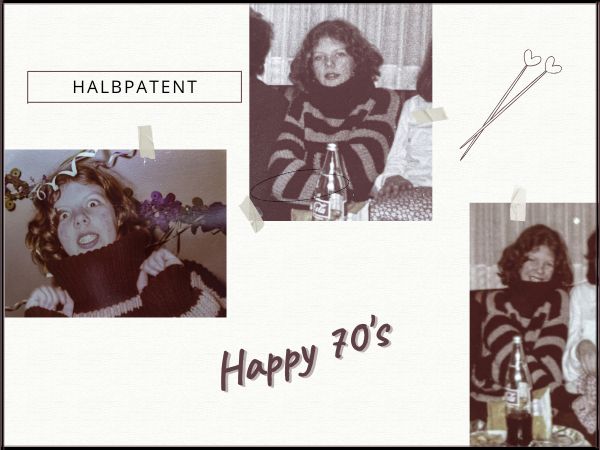 Ich erinnere mich noch genau an meinen ersten Rollkragenpullover mit weitem Kragen und breiten Blockstreifen. Gestrickt aus dem damals so modernen Polyacryl, im Halbpatent in Reihen und langen, unhandlichen Stricknadeln. Er war einfach gemütlich, ließ sich schnell drüber ziehen und wurde entsprechend oft getragen. Egal zu welchem Anlass. Ich hab tatsächlich noch ein paar lustige Bilder von einer Silvesterfeier mit Klassenkameraden gefunden: